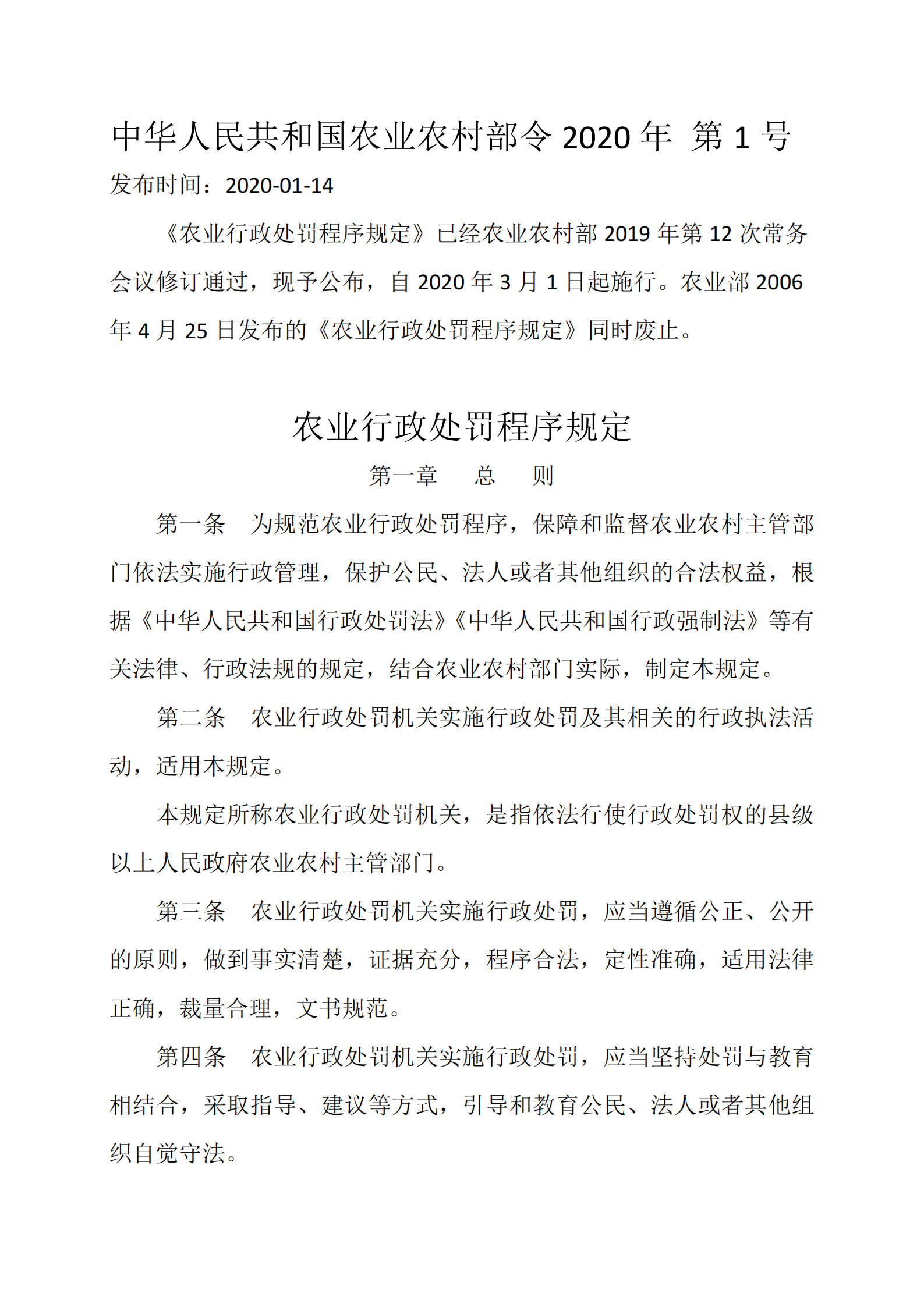 农业行政处罚程序规定