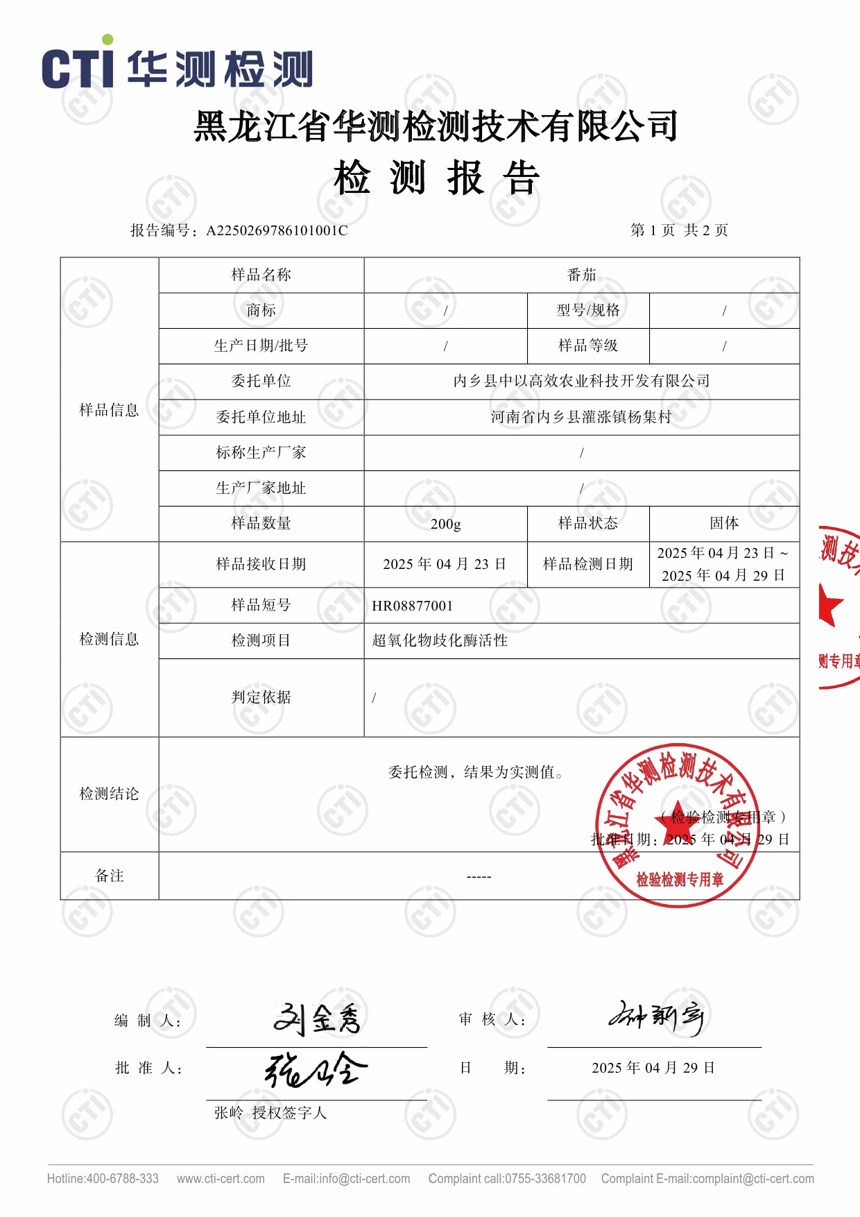 农产品检测报告